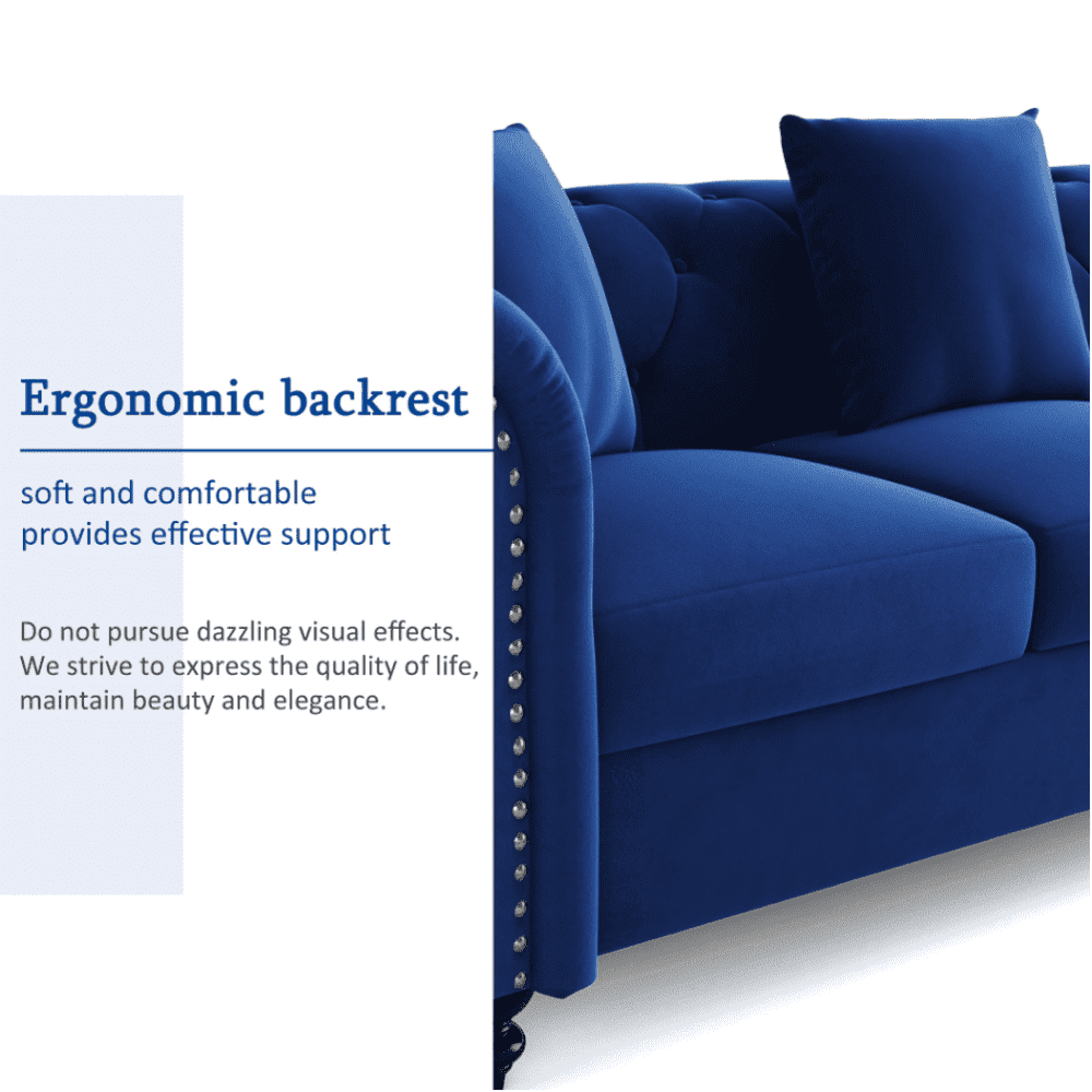 The color of this sofa adds a touch of boldness to your decor, creating a neutral palette. The plush velvet material is comfortable and cozy on the skin, and the deep seat cushions provide plenty of room to stretch your legs while bringing a different kind of living experience to your living room and den.