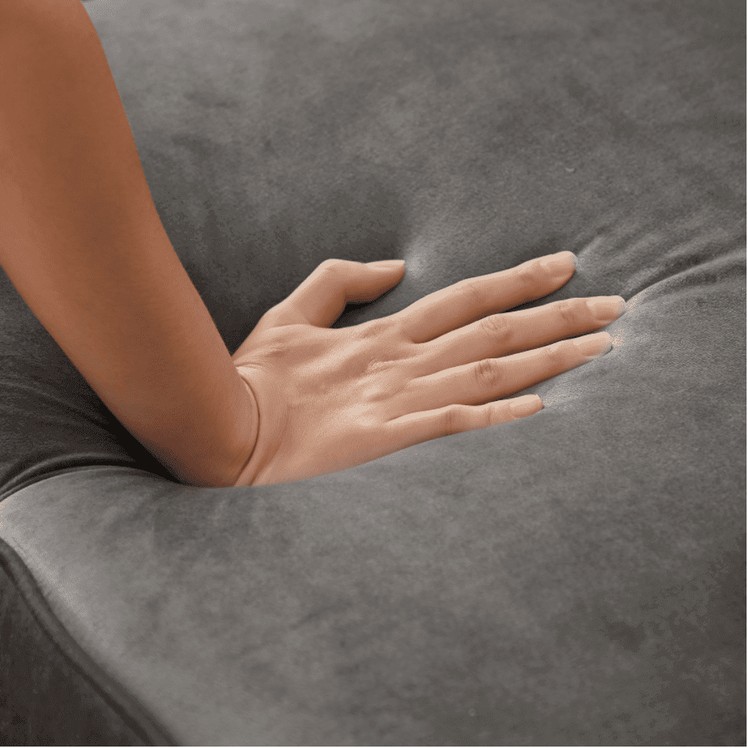 Modern, comfy and versatile - a living room corner sofa that you need. Solid eucalyptus wood frame provides durability and longevity. Thickly padded cushions, upholstered with hardwearing and soft suede fabric create a welcoming place to sit back and relax. Short legs greatly complement sofa minimalistic design that will enhance any modern set-ups.