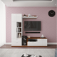 - A wall-mounted panel provides an elegant look to the TV unit and allows ample open and closed cabinet storage according to the need.