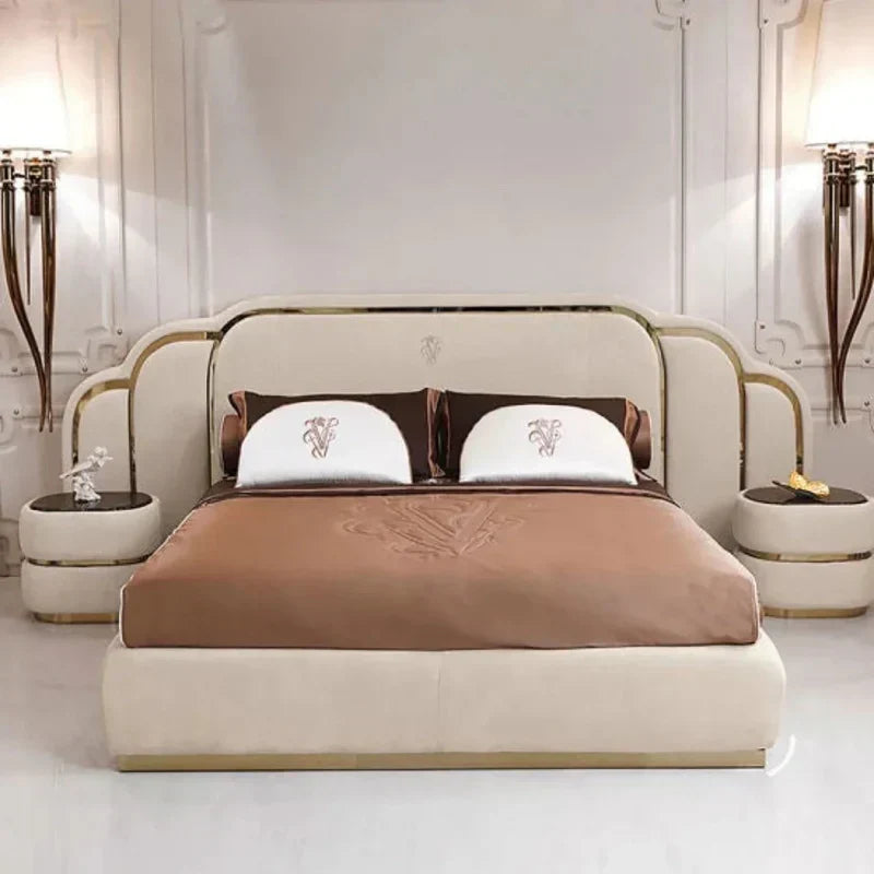 Vivo Premium Upholstered Bed With Side Tables in Suede